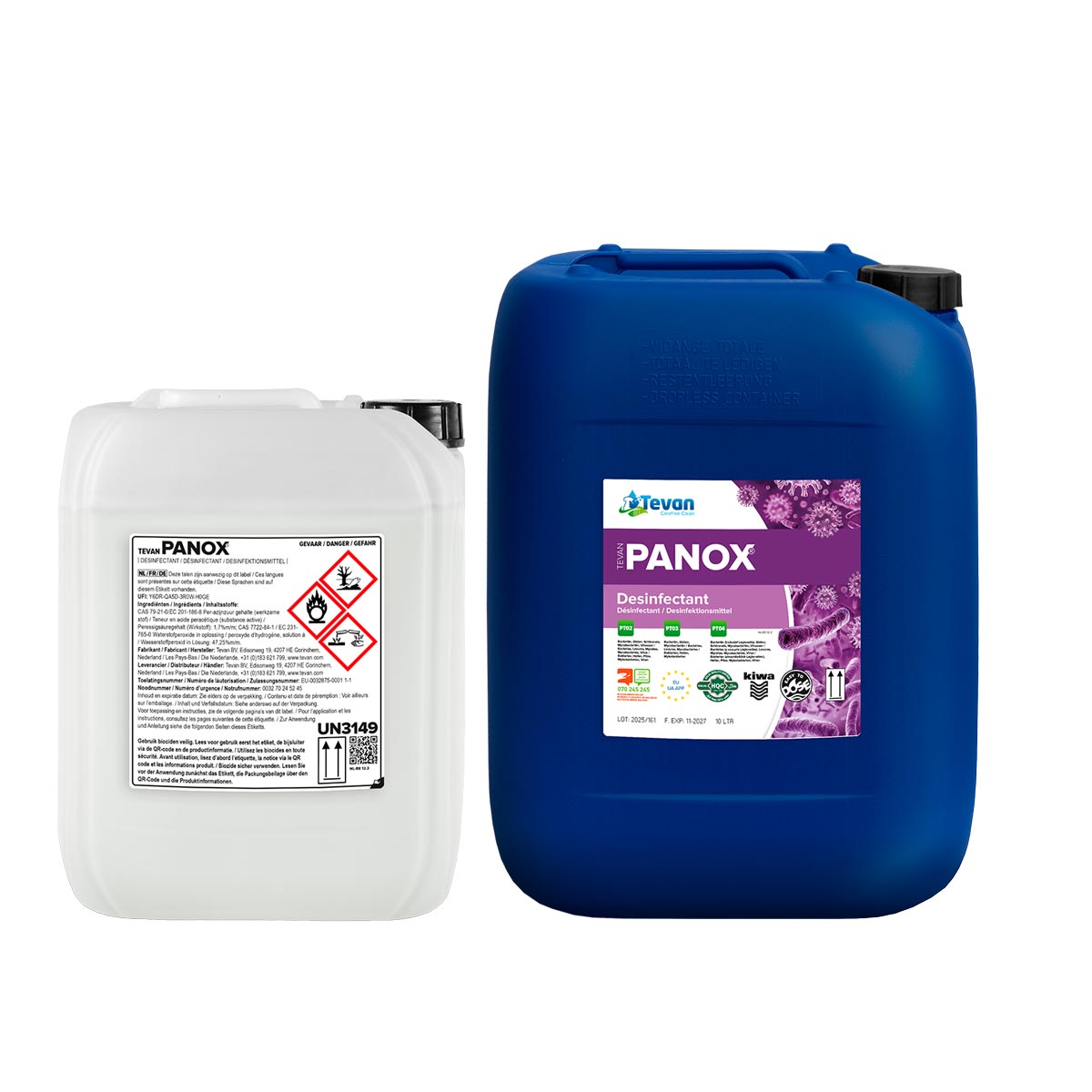 Desinfecteer de leidingen met Tevan Panox. Houdt u zich hierbij altijd aan het wettelijke gebruiksvoorschrift met betrekking tot dosering en inwerktijd. Controleer bij ieder tappunt op de aanwezigheid van Tevan Panox met behulp van de peroxidemeetstrips.