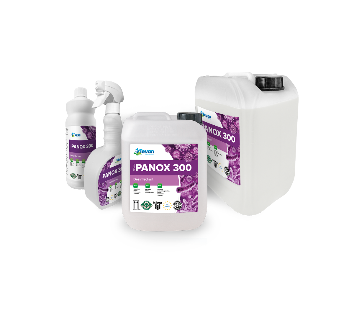 Tevan Panox 300 is een gebruiksklaar desinfectiemiddel op basis van waterstofperoxide en perazijnzuur. Panox 300 gebruikt u voor desinfectie van alle waterbestendige oppervlakken. Panox 300 is werkend bewezen binnen de toepassingen PT02, PT03 en PT04.